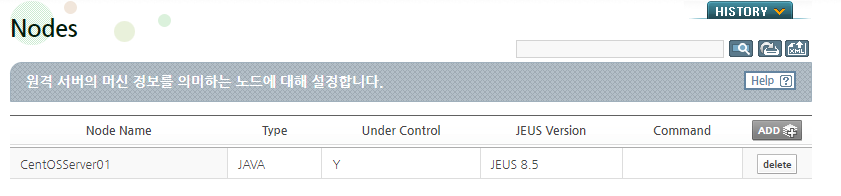 NodeManager 기동 여부는 WebAdmin 메인 화면의 우측에 Node 설정 버튼을 클릭하여 확인할 수 있습니다.