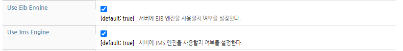 EJB, JMS Engine을 사용하지 않는 경우, Use Ejb Engine / Use Jms Engine 옵션의 체크를 해제합니다.(기본값 : true)