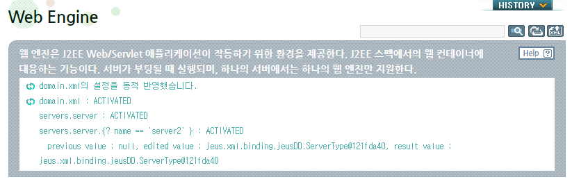 Engine 탭에서는 Web, JMS, EJB 엔진에 대한 상세 설정을 할 수 있습니다.